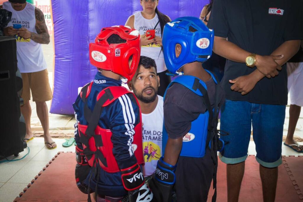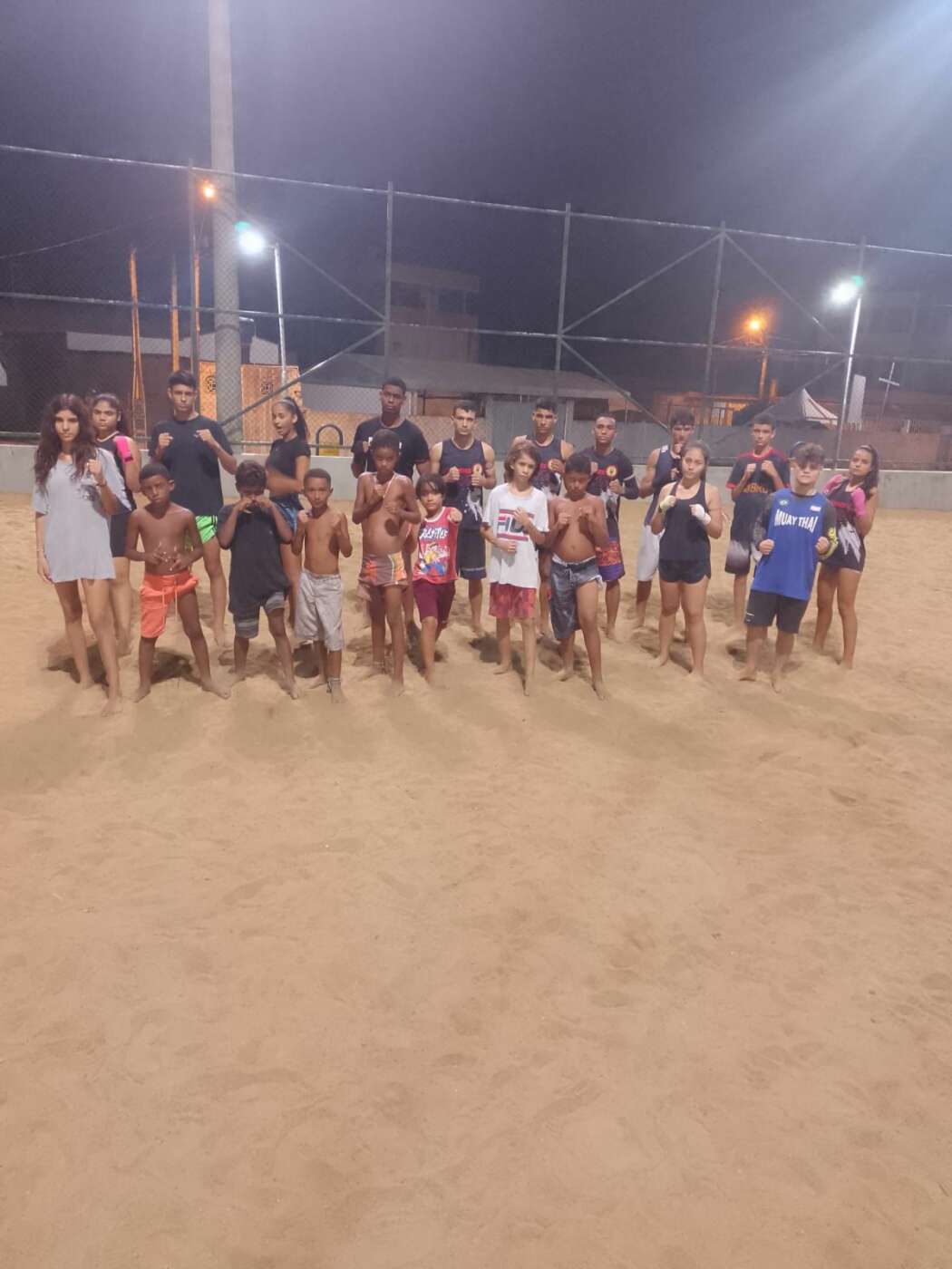A ação é realizada pelo projeto social de muay thai do bairro Concha D’Ostra, que atende cerca de 30 crianças