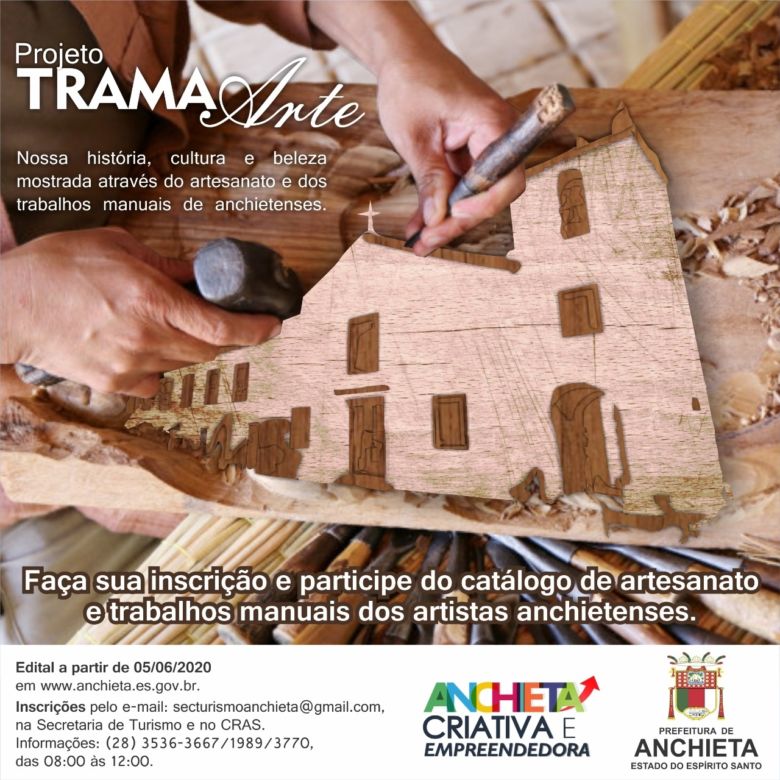 A Prefeitura de Anchieta, por meio da Secretaria de Turismo, Comércio e Empreendedorismo (Seturce), prorrogou as inscrições do Projeto Trama-Arte, que tem objetivo de fomentar a história, cultura e belezas da cidade por meio do artesanato. Agora os interessados podem se inscrever até o dia 31 de julho.