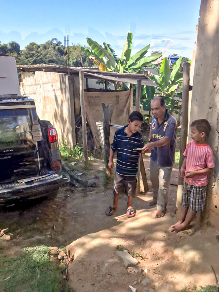 A psicóloga foi visitá-los e levou as doações. “A casa onde moram não tinha mesa nem cadeiras. O sofá não dava para sentar, dois buracos grandes. Só tinha uma cama. Não tinham armário nem estante, guardavam tudo dentro de uma sapateira. Na cozinha só havia uma geladeira quebrada que era usada para guardar os alimentos. Sobre o banheiro, a situação do vaso sanitário estava precária e o chuveiro não funcionava. Eles tomavam banho gelado do lado de fora. A situação era muito difícil”.
