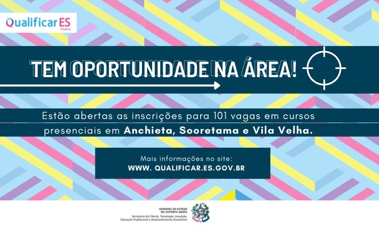 Começam, nesta sexta-feira (18), as inscrições para os cursos presenciais da 2ª oferta do Qualificar ES, destinados aos moradores de Anchieta, Sooretama e Vila Velha. São 101 vagas em dois editais. O programa Qualificar ES, coordenado pela Secretaria de Inovação e Desenvolvimento (Sectides), é uma iniciativa do Governo do Espírito Santo para promoção da educação profissional aos capixabas.