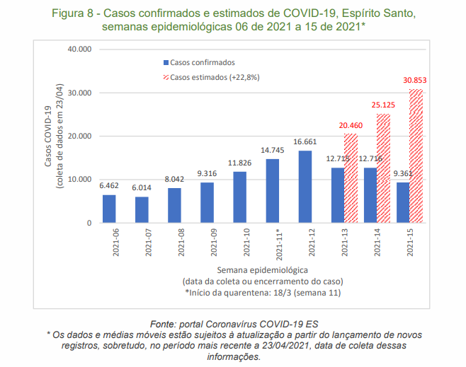 “Vale destacar também que o fato do não colapso do sistema de saúde indica a importância da implementação da quarentena, tendo em vista que a projeção aqui apresentada estima um número de vidas preservadas, mas não considera o colapso do sistema de saúde, pois caso isso ocorresse, esse número seria muito maior, já que muitos que teriam condições de sobreviver em leitos hospitalares, não seriam contemplados e viriam a óbito. De fato, segundo cálculos conservadores e subestimados, entre 875 e 1.133 pessoas tiveram as suas vidas poupadas, entre o final de março e metade de abril de 2021, no Espírito Santo”.