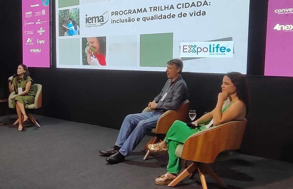 O Instituto Estadual de Meio Ambiente e Recursos Hídricos (Iema) marcou presença na Expolife 2025, o maior evento de saúde e bem-estar do Espírito Santo, com a palestra “Meio Ambiente e bem-estar: a importância do contato com a natureza na promoção da saúde”. Realizada na última quarta-feira (23), na Arena do Conhecimento, a atividade foi conduzida pela psicóloga ambiental Karla Fafá, pela técnica em Meio Ambiente Fernanda Severino e pelo médico da família e comunidade Marc Storck.