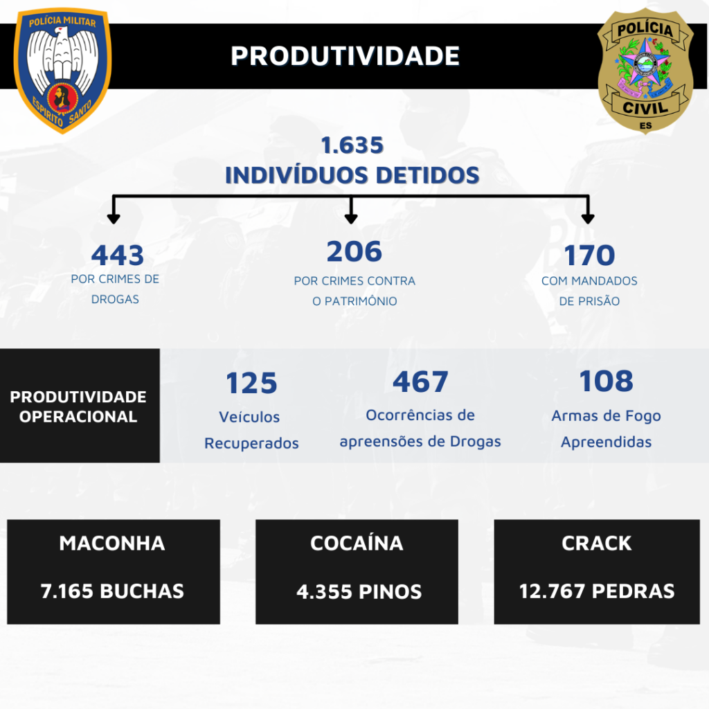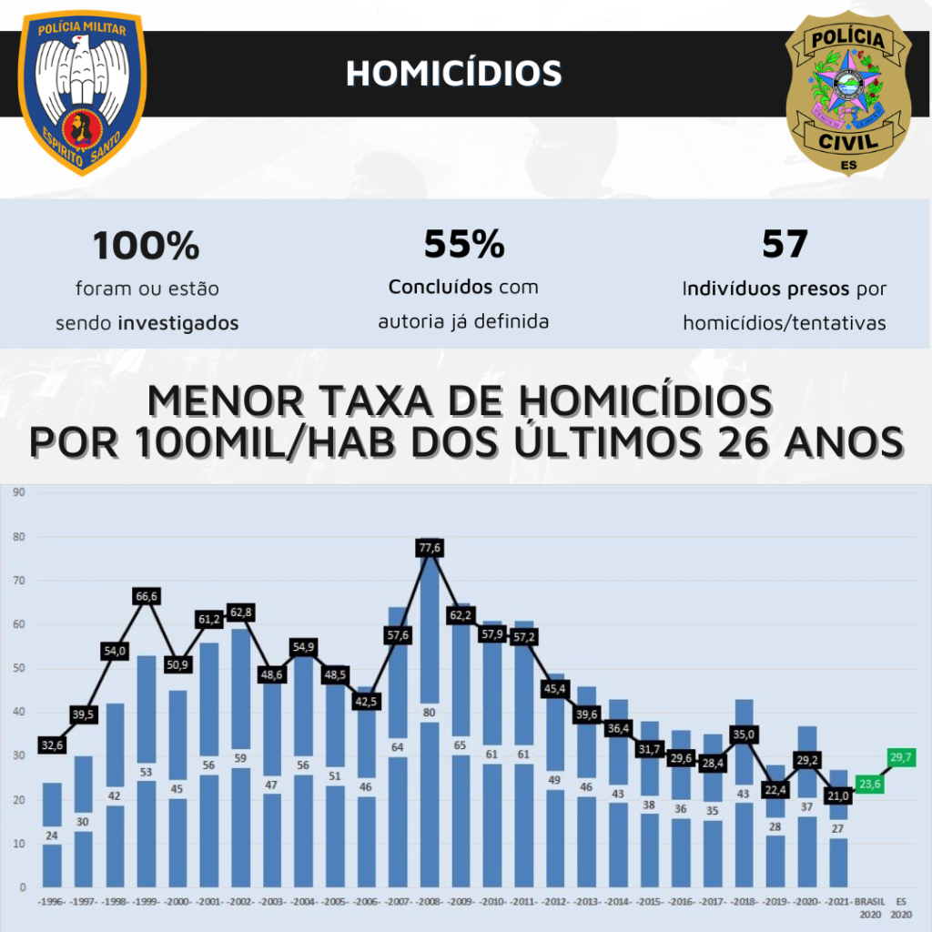 Um ponto importante a ser destacado é o decréscimo do número de homicídios, sendo a menor taxa por 100 mil habitantes em 26 anos. O chefe da 5ª Delegacia Regional de Guarapari, delegado Rafael Ramos Corrêa Luiz, citou que essa redução é um marco para a segurança pública capixaba, mas enfatizou que o objetivo é reduzir ainda mais os crimes de forma a melhorar a qualidade de vida do cidadão capixaba.