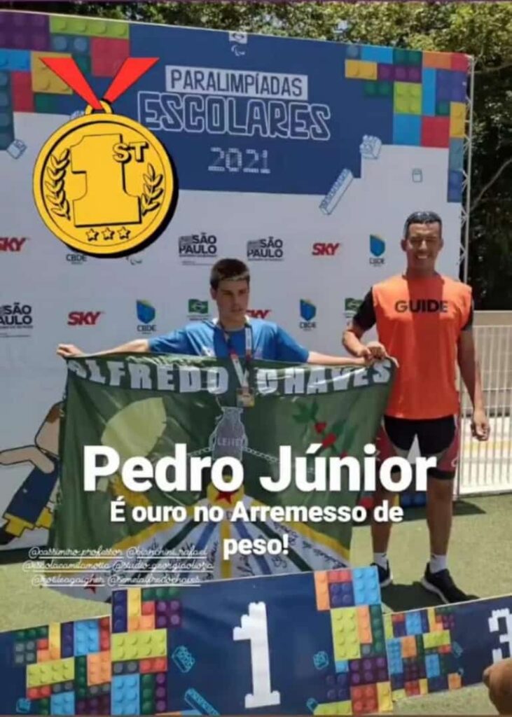 Outro jovem do Espírito Santo conquistou medalhas nas Paralimpíadas Escolares 2021, evento que aconteceu entre os dias 22 e 27 de novembro no Centro de Treinamento Paralímpico, em São Paulo. Pedro Junior Cassilhas Gomes, representando o município de Alfredo Chaves, conquistou o primeiro lugar no arremesso de peso e o terceiro no atletismo.