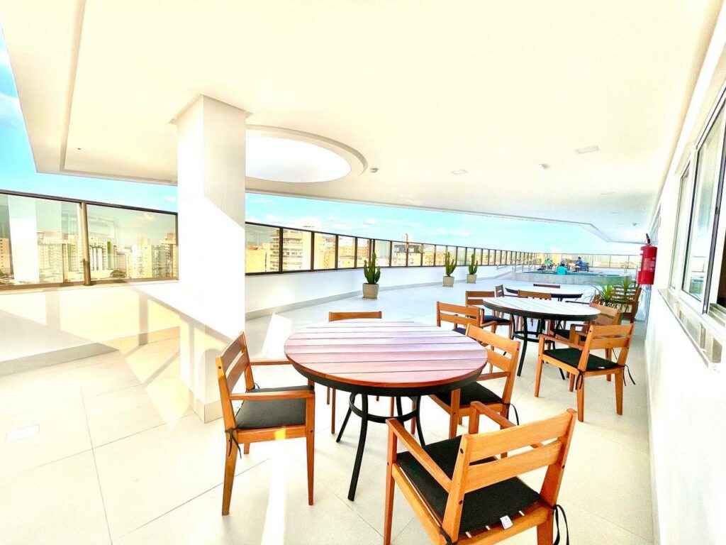 “A vista da área de lazer, combinada à iluminação da piscina traz paz e tranquilidade. Ao entardecer, com o pôr do sol e a cidade se iluminando, tudo fica ainda mais bonito”
