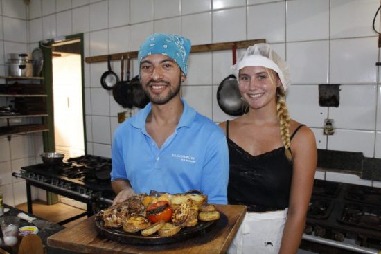 Outro ponto que vale destaque veio da experiência dos sócios com intercâmbios estudantis e que agregou ao estabelecimento a dinâmica de também receber pessoas de outros países. Há um mês, a alemã Emília Carstens está no Playeros através de um programa desse tipo e contou à nossa equipe que Guarapari foi a primeira parada dela no Brasil, destacando a beleza das praias e a simpatia das pessoas da cidade. Enquanto isso, Uriel Veja, natural de Cartagena, na Colômbia, que também conheceu a cidade dessa forma, hoje, é um dos cozinheiros do local. “Foi uma oportunidade que despertou a minha paixão pela gastronomia”, disse.