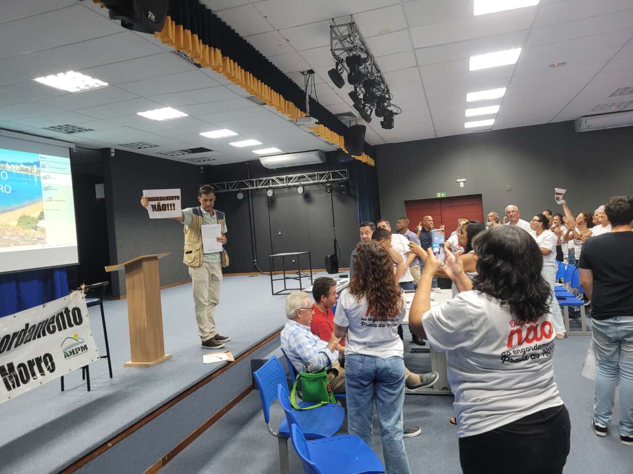 Com cartazes e camisetas com dizeres como “Engodamento não”, moradores apresentaram argumentos contra o projeto. Uma das reivindicações dos moradores que compareceram à audiência é a falta de comunicação sobre os desdobramentos e as fases do projeto. Houve alegação de que a prefeitura não atendeu aos pedidos de vistas do documento e não teria dado acesso para que a comunidade conhecesse o conteúdo.