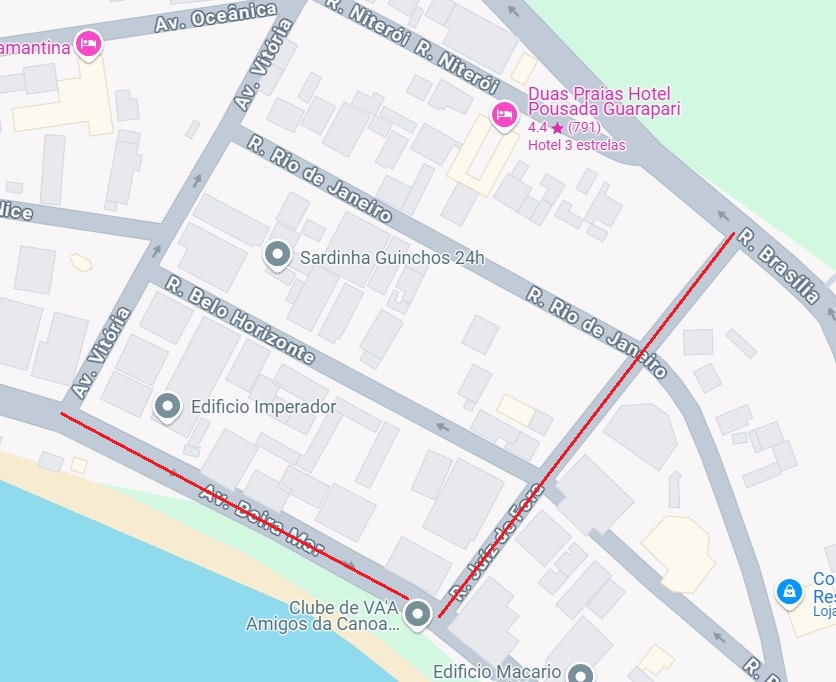 A intervenção ocorrerá em um trecho que se estende da Rua Juiz de Fora até a Avenida Beira Mar e outro na Avenida Beira Mar, especificamente entre as interseções com a Rua Juiz de Fora e a Avenida Vitória.