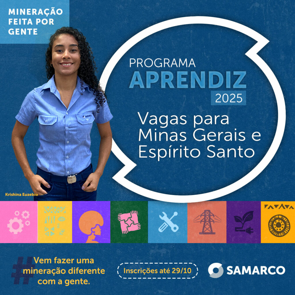 As inscrição são feitas por meio do link: https://trabalheconosco.vagas.com.br/samarco/aprendiz