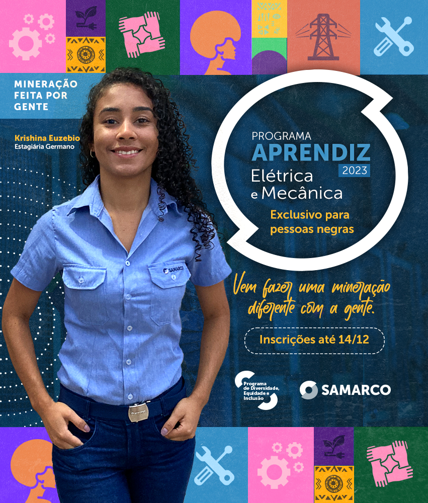 A Samarco lançou o Programa Aprendiz para jovens negros (as), como mais uma ação afirmativa da empresa para promoção da diversidade, equidade e inclusão. São 69 vagas para residentes de Mariana, Ouro Preto e região, em Minas Gerais; e Anchieta, Guarapari, Piúma e região, no Espírito Santo. Para se inscrever é necessário que o (a) candidato esteja cursando o Ensino Médio ou já ter concluído esse nível de escolaridade, com idade entre 17 e 20 anos. O Programa Aprendiz será promovido em parceria com o Senai e as inscrições devem ser realizadas até o dia 14 de dezembro, nos links abaixo.