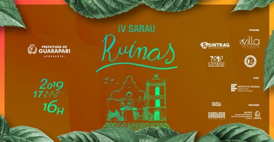 A 4ª edição do “Sarau Ruínas” acontece no próximo sábado (17) nas ruínas da Igreja Nossa Senhora da Conceição, Centro de Guarapari.