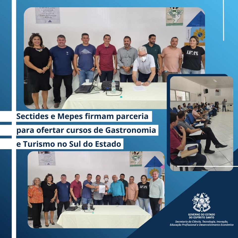 Nesta sexta-feira (25), representantes da Secretaria de Inovação e Desenvolvimento (Sectides) e do Movimento de Educação Promocional do Espírito Santo (Mepes) assinaram um Termo de Fomen que vai ampliar a oferta de qualificação profissional na Escola Família de Turismo (Eftur). A assinatura aconteceu no Centro de Formação do Mepes, em Piúma.