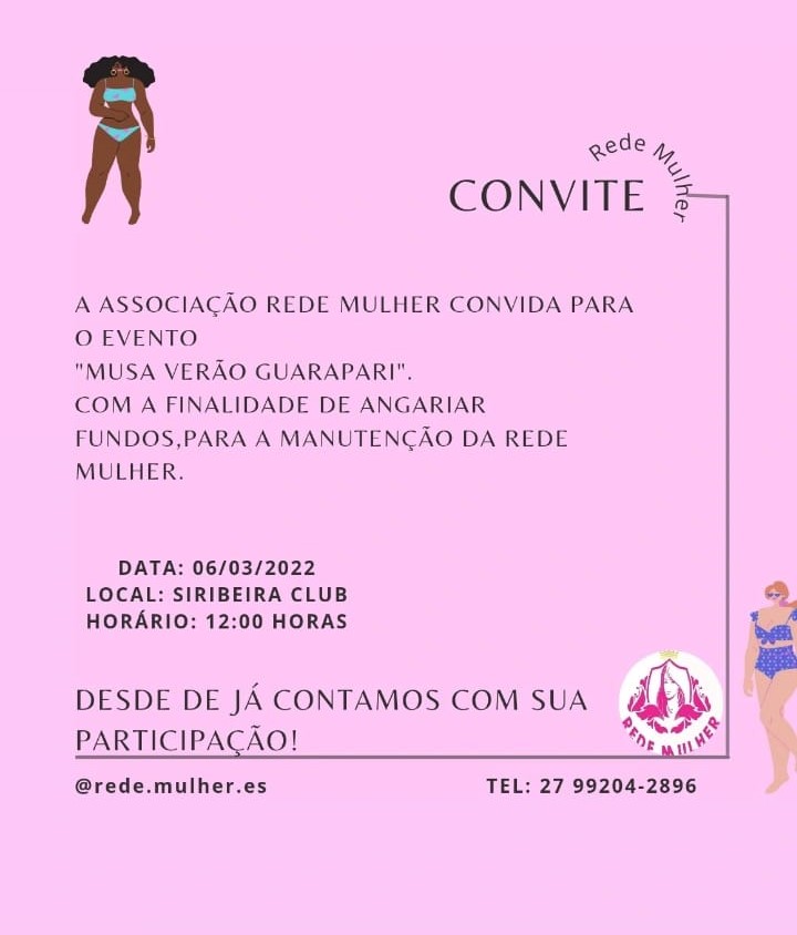 Já a Associação Rede Mulher, sediada no bairro Village do Sol, voltada para atendimentos de atenção à Saúde da Mulher, realiza, também neste domingo (06), um evento com um desfile de beleza inclusivo que vai arrecadar recursos para manter o trabalho da instituição.