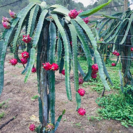 A colheita das frutas pitaya já começou e um sítio na localidade de Cachoeira Alta, interior de Alfredo Chaves, abriu a propriedade para visitação. É preciso agendar o passeio para conhecer a fruta exótica e o visitante pode escolher as próprias pitayas que deseja comprar.