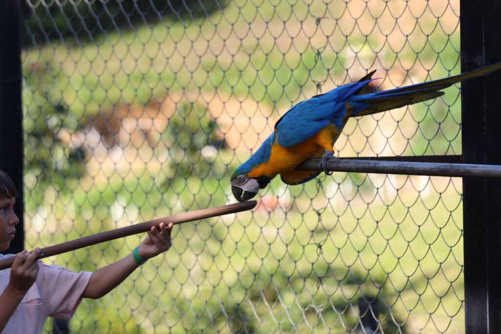 Em um grande viveiro de imersão, araras, papagaios, tucanos, turaco persa e coelhos podem ser vistos de pertinho e até alimentados pelos visitantes. Essa é uma das atividades mais aguardadas pelas crianças. E para evitar o estresse às aves, o acesso ao local é acompanhado por monitores do Bioparque e é feito em horários programados, diversas vezes ao dia.