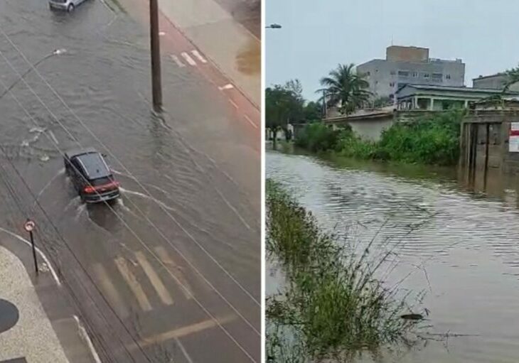 Chuva forte deixa ruas alagadas e causa transtornos em Guarapari; confira imagens registradas