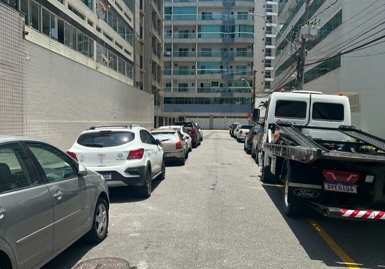 Morador registra carros estacionados nos dois lados de rua em Guarapari e pede soluções a Prefeitura