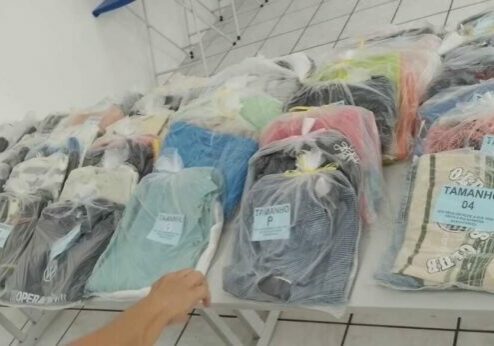 Doações foram separadas em sacolas plásticas transparentes, aromatizadas e com tamanhos identificados