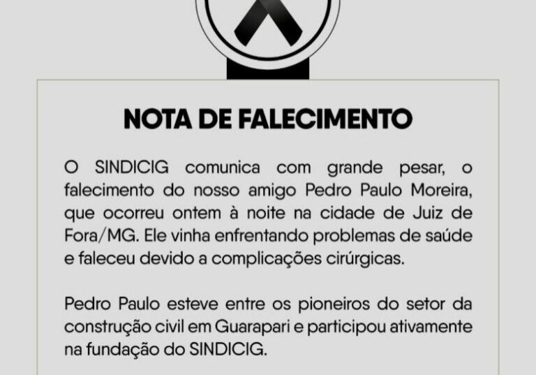 Faleceu ontem (6) a noite Pedro Paulo Moreira, importante nome da construção civil em Guarapari