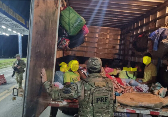Caminhão com 31 turistas de MG no baú é flagrado a caminho do litoral do ES