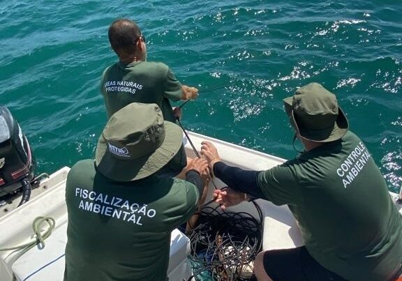 Iema e Ibama apreendem mais de 2 mil metros de redes ilegais de pesca durante operação em Guarapari