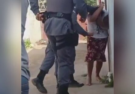 Um vídeo feito por uma testemunha mostra que um dos militares dá uma joelhada e socos no rosto da mulher