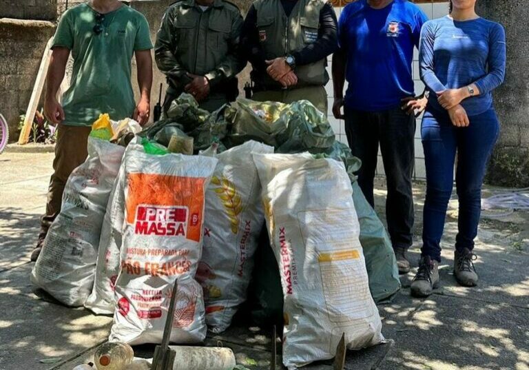 Ação de limpeza no Rio Perocão em Guarapari coletou quase uma tonelada de lixo