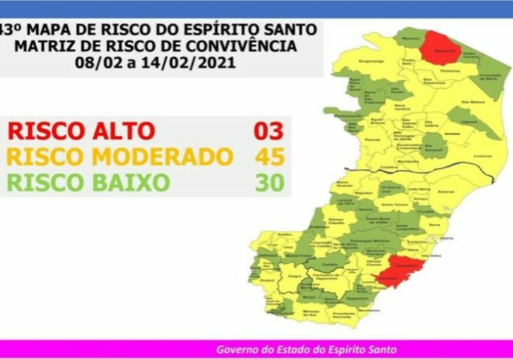O mapa terá vigência entre a próxima segunda-feira (08) e o domingo seguinte (14) e trás 3 cidades classificadas como de Risco Alto