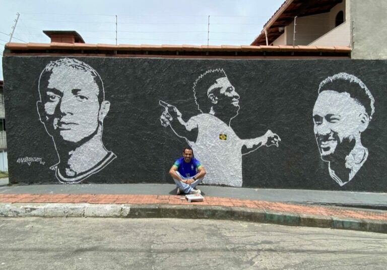 Artista autodidata de Guarapari encanta jogador da seleção com pintura em muro