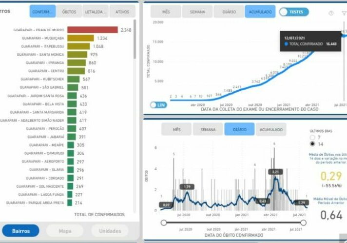 Painel Covid-19: Guarapari ultrapassa 15 mil casos, mas média de óbitos diminui