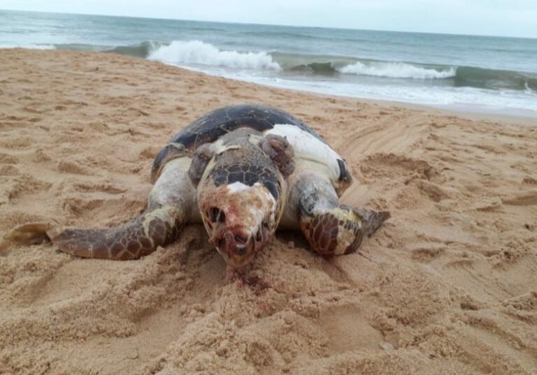 Tartaruga de aproximadamente 100kg é encontra morta na Praia de Guaibura em Guarapari