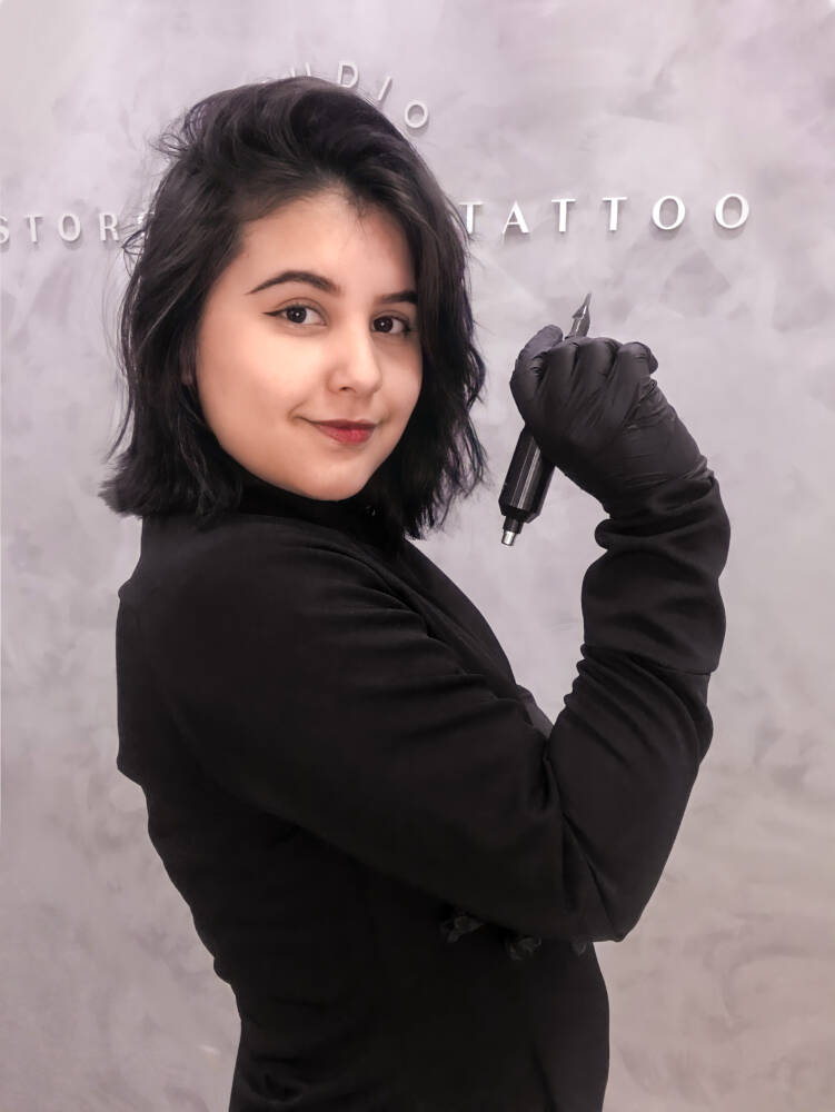 Marina não planejou ter um estúdio próprio e não vislumbrava uma profissão de nível superior, mas sabia que o futuro dela estava na arte, já que, desde criança, mostrava talento com desenhos. “Na adolescência comecei a me aperfeiçoar e fazer desenhos realistas; com a pandemia, a atividade que exercia foi interrompida e resolvi estudar as técnicas de tatuagem, treinei e fiz a primeira em mim. O resultado ganhou proporções maiores e em poucos meses estava tatuando profissionalmente; logo precisei ter um espaço formal”, contou.
