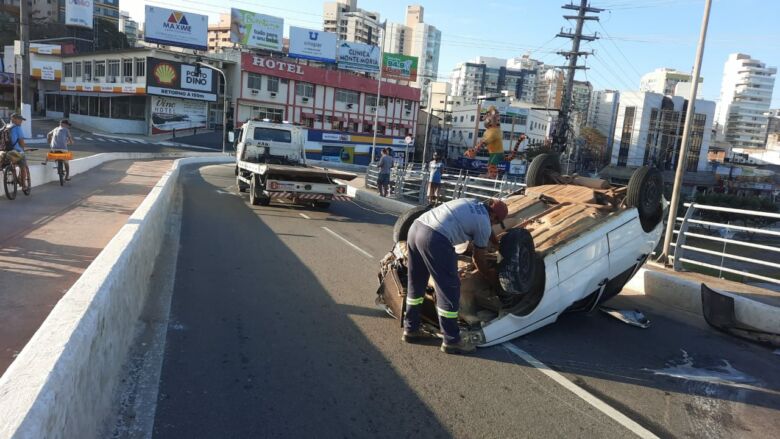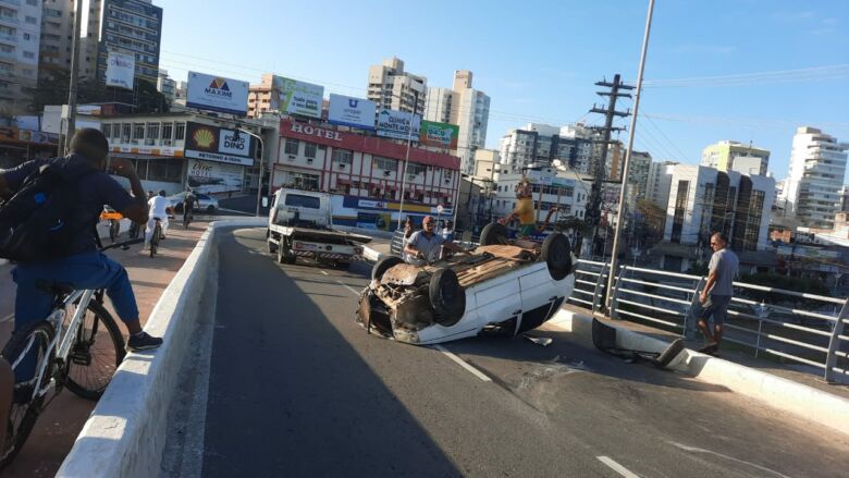 Uma imagem surpreendeu a população que passou pela ponte de Guarapari na manhã deste sábado (28). Um veículo, que aparenta ser um Fiat Uno Mile, amanheceu capotado e com as rodas para cima no local. As imagens rapidamente passaram a circular nas redes sociais.