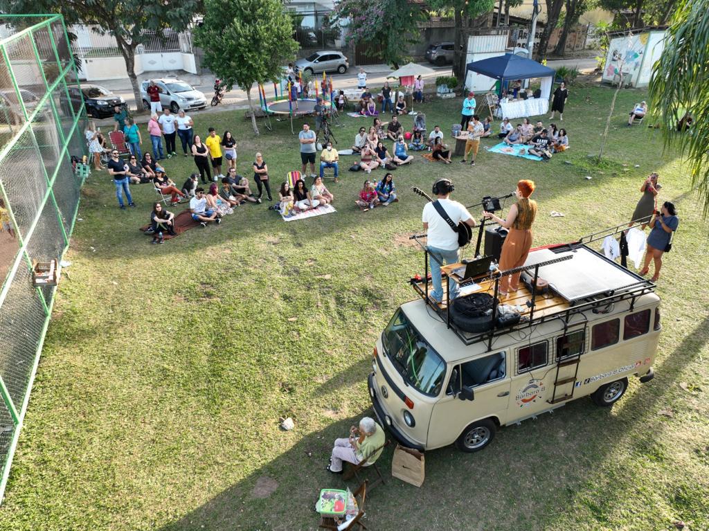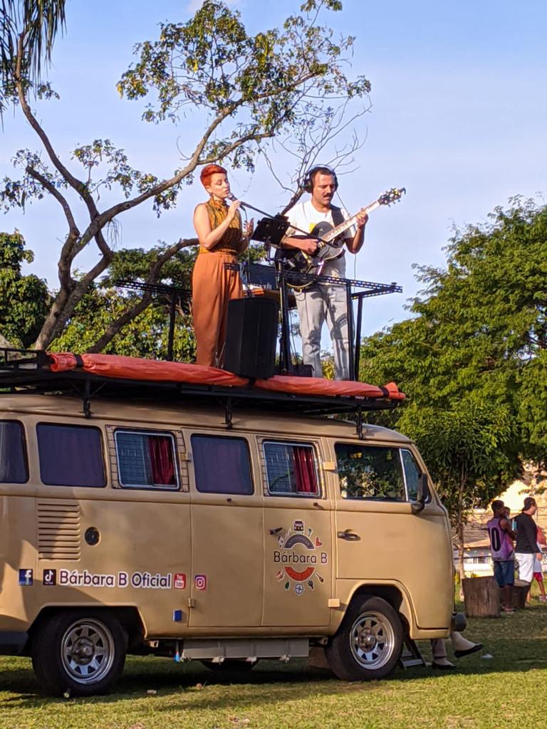 Com a ideia formada, Bárbara e Marcio venderam o carro que tinham e compraram uma Kombi clipper 1992, em junho de 2021. A “Kombi Theodora”, como é chamada, se tornou casa e palco dos artistas através das próprias mãos.