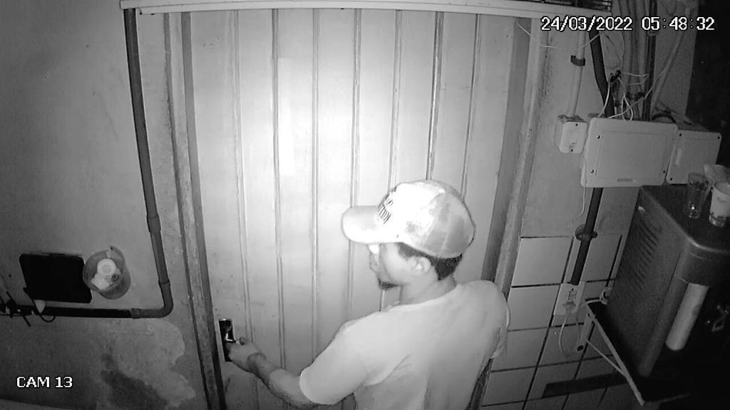 As câmeras de segurança do local registraram toda a ação do criminoso. Confira abaixo:
