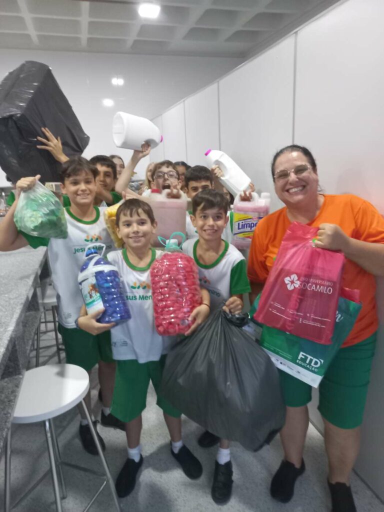 No encontro, que aconteceu no laboratório de ciências da escola, onde é armazenada a maior parte dos materiais coletados pelos próprios estudantes, os pequenos tiveram a oportunidade de ouvir um pouco sobre a importância da reciclagem e o comprometimento com a vida dos animais e o futuro do planeta.